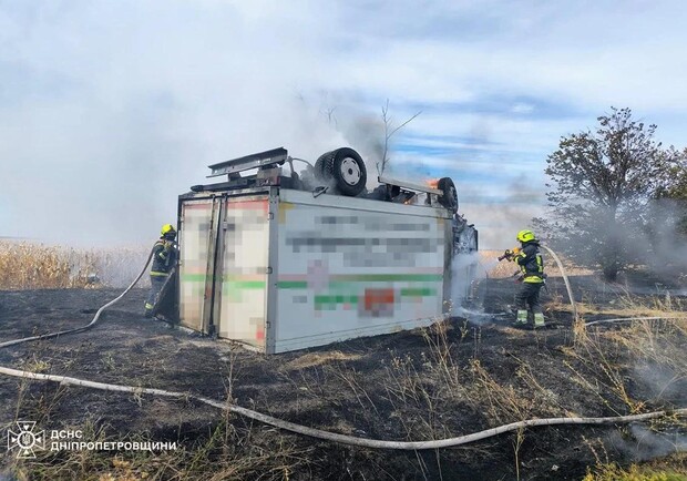На трассе возле Днепра после ДТП загорелись грузовик и легковушка: один водитель в больнице