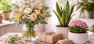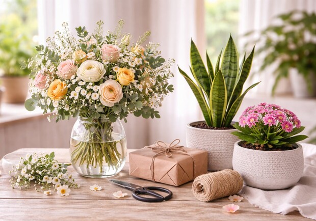 Живые цветы плюс комнатное растение: новый формат романтического подарка в Киеве