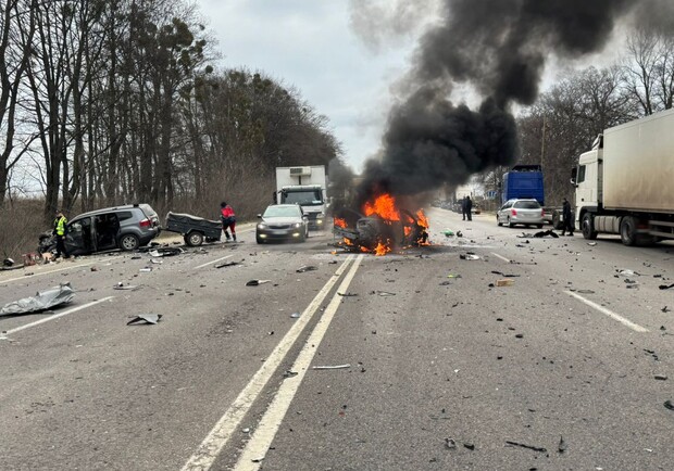 У Дублянах під час ДТП вибухнув автомобіль, є жертви: фото з місця трагедії